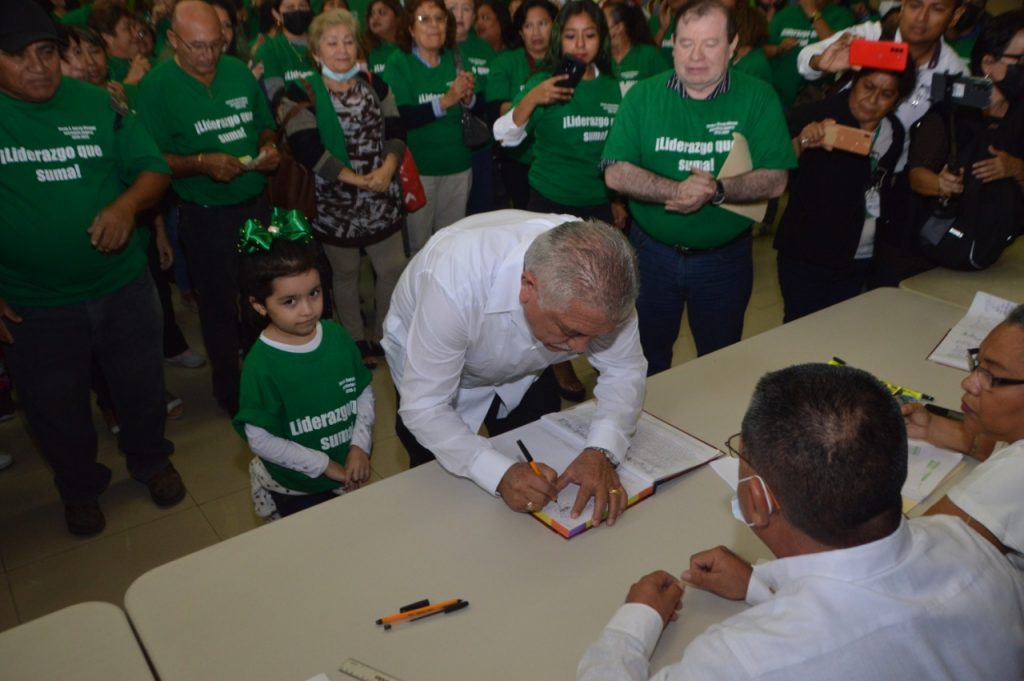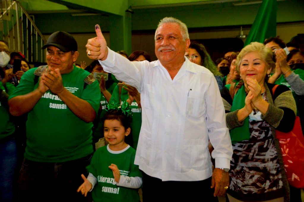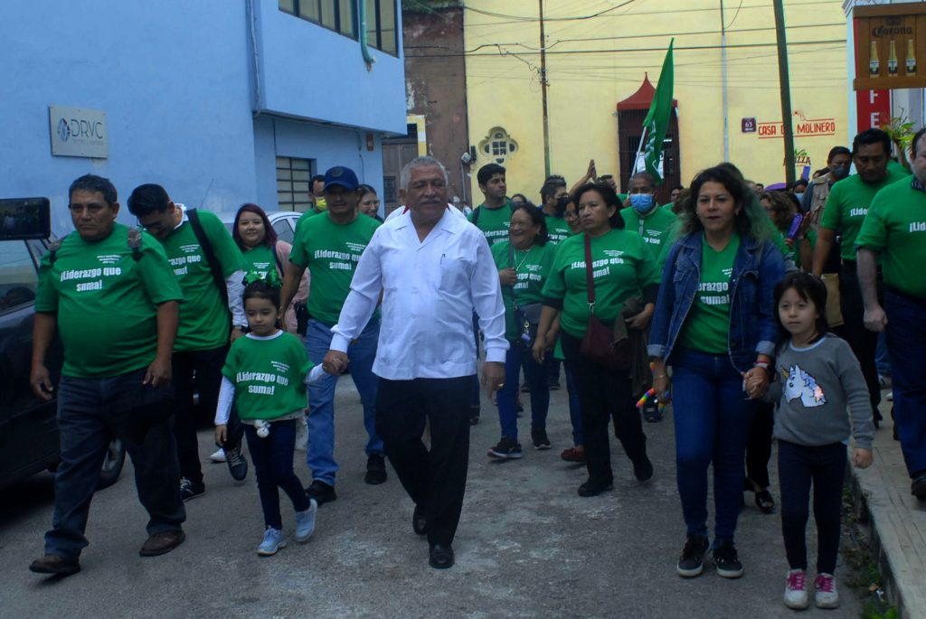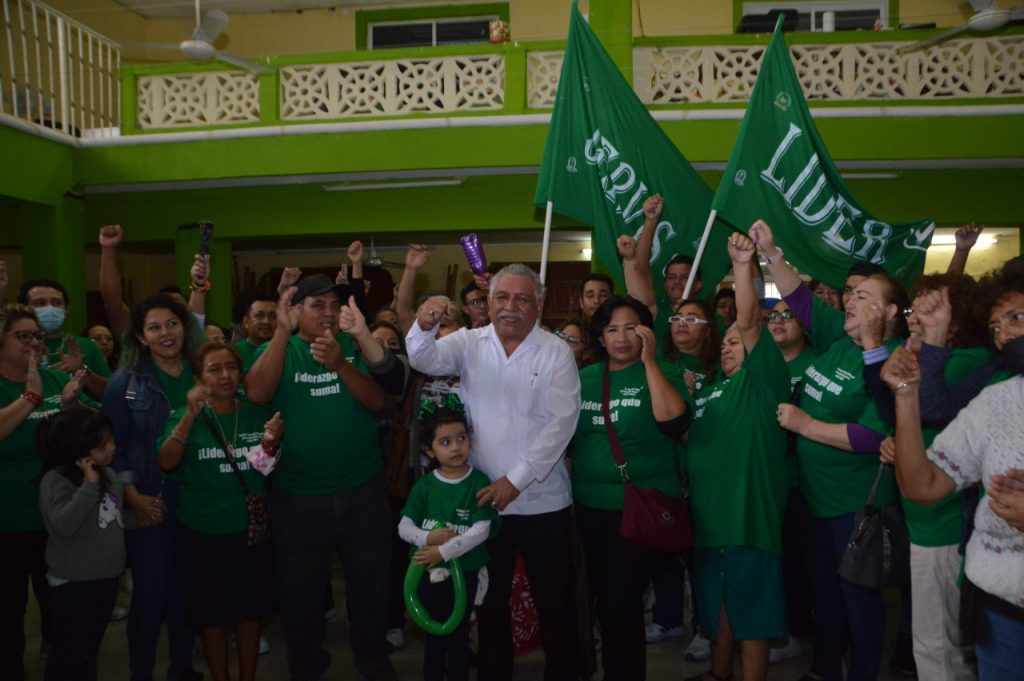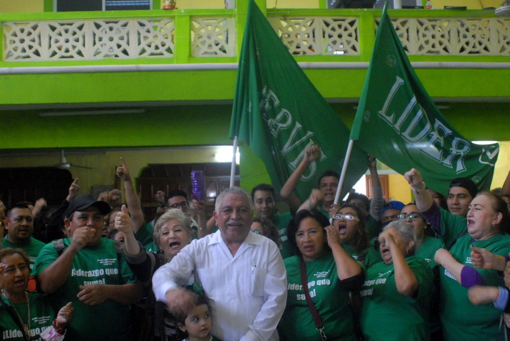 MÉRIDA, 27/01/2023. —La “ola verde” en apoyo al Jervis García Vázquez, candidato a la dirigencia del Sindicato de Trabajadores al Servicio del Poder Ejecutivo e Instituciones Descentralizadas de Yucatán (STSPEIDY), se inscribió este viernes con la Planilla Verde.