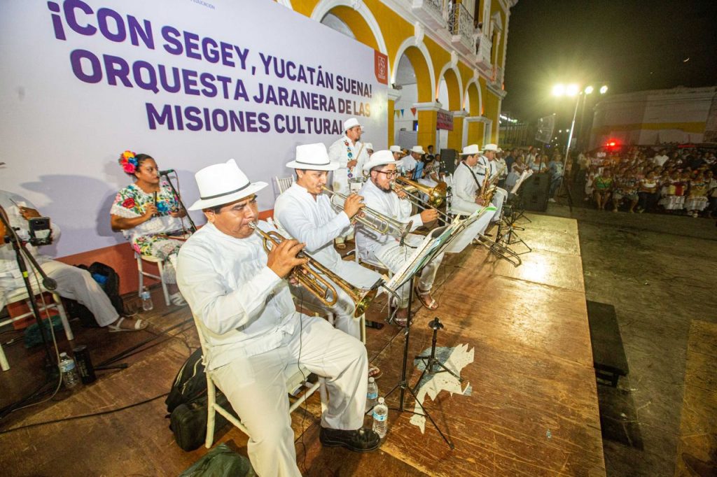 TECOH, YUCATÁN, 22/06/2023. —La Orquesta Jaranera de las Misiones Culturales de la Secretaría de Educación del Gobierno del Estado (SEGEY), continúa presentándose en los municipios, llenando los espacios públicos de las tradiciones y costumbres yucatecas.