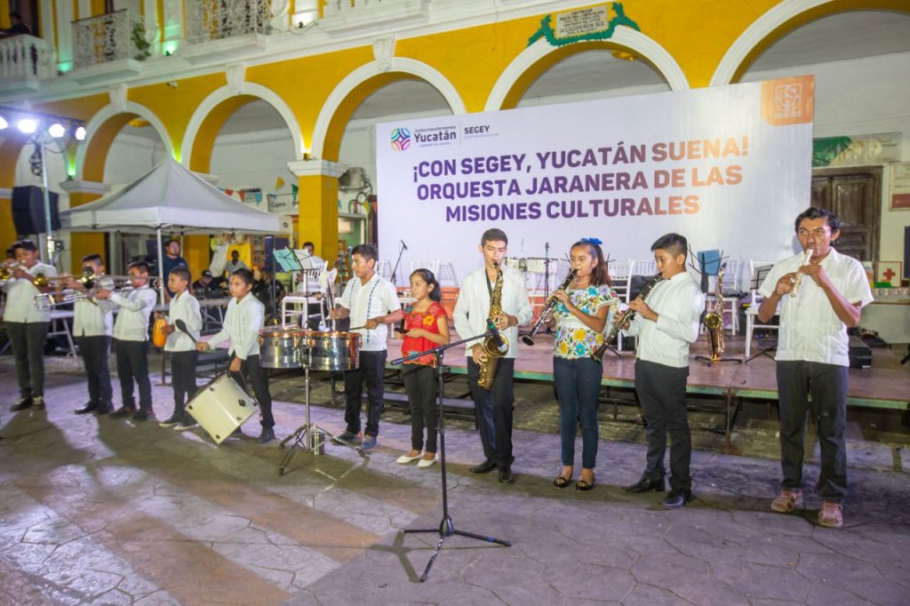 >>>La Orquesta de las Misiones Culturales llenó de magia cultural la plaza principal de Tecoh.