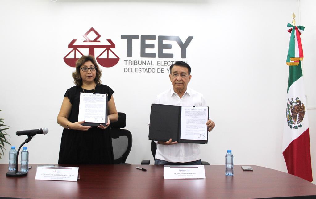 El convenio fue realizado en la Sala de Sesiones “Flavio Galván Rivera” por la magistrada presidenta Lissette Guadalupe Cetz Canché, y el director de dicha dependencia estatal, Eric Villanueva Mukul, quienes se comprometieron a la organización y desarrollo de programas, acuerdos y otras actividades relativas al ejercicio de los derechos políticos de las comunidades mayas de Yucatán.