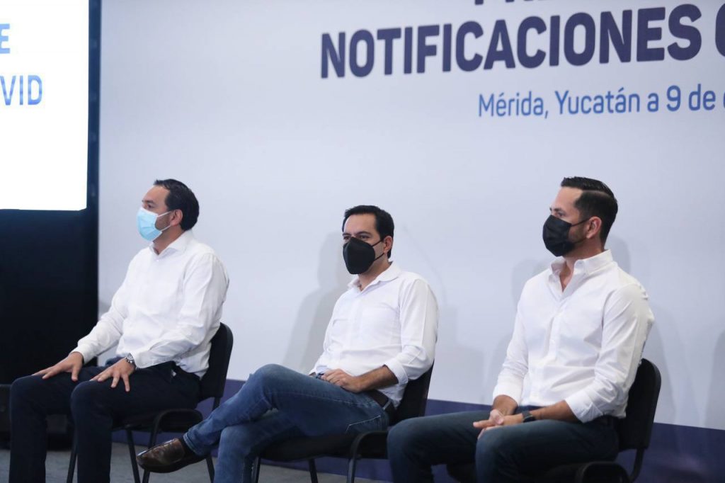 MÉRIDA, 09/12/2021. –Yucatán hace uso de una nueva herramienta tecnológica de primer mundo denominada “Notificaciones Covid Yucatán”, desarrollada en alianza con las empresas multinacionales Google y Apple, que permitirá frenar cadenas de contagio a través de los teléfonos celulares, al cual fue presentada por el Gobernador Mauricio Vila Dosal.