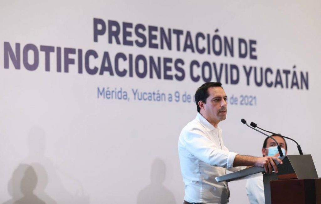 MÉRIDA, 09/12/2021. –Yucatán hace uso de una nueva herramienta tecnológica de primer mundo denominada “Notificaciones Covid Yucatán”, desarrollada en alianza con las empresas multinacionales Google y Apple, que permitirá frenar cadenas de contagio a través de los teléfonos celulares, al cual fue presentada por el Gobernador Mauricio Vila Dosal.