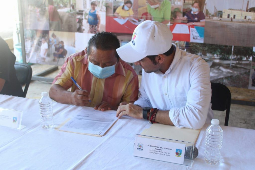 YUCATÁN, 08/12/2022. -El Dr. Gaspar Ventura Cisneros Polanco, Presidente Municipal de Umán junto a autoridades Estatales de Salud develaron la placa en la comisaría de Ticimul que la certifica cómo una comunidad promotora de la Salud al igual que a las escuelas.