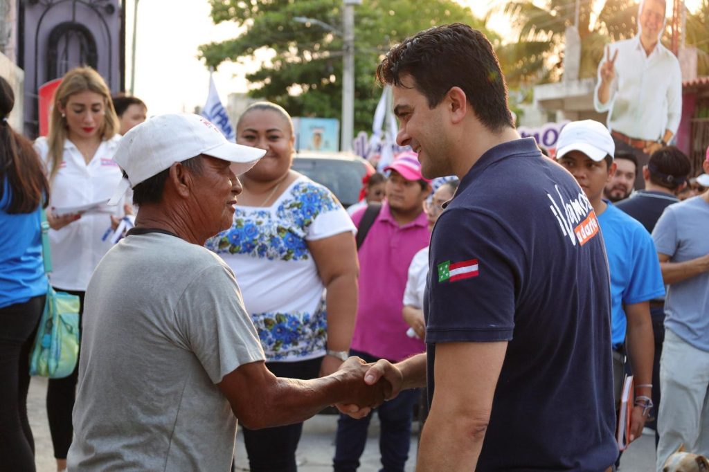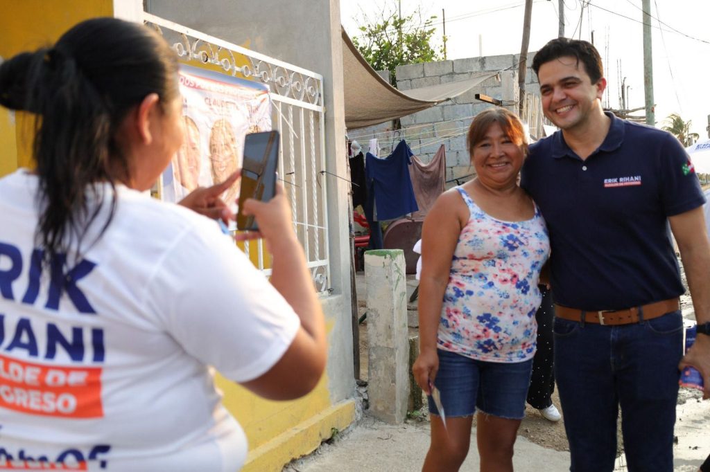 PROGRESO, YUCATÁN, 19/05/2024. —El candidato del PAN a la Presidencia Municipal del Puerto de Progreso, Erik Rihani González, recorrió junto a Claudette Gamboa Rassam, candidata a Diputada Local del Distrito 14, las calles de la colonia Vicente Guerrero, para compartir su plan de trabajo y también, para escuchar de cerca las inquietudes y propuestas de los ciudadanos.