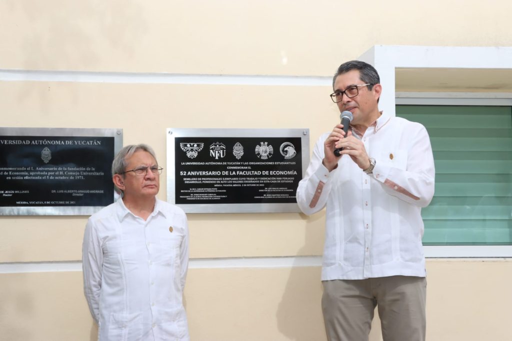 Cómo parte de las actividades por el 52 aniversario de la Facultad de Economía de la Universidad Autónoma de Yucatán (UADY), el funcionario estatal platicó con alumnos sobre cómo las habilidades y conocimientos que se adquieren en el nivel superior y posgrado les ayuda a insertarse en la vida laboral, como el caso del diplomado de comercio exterior que ahora es la Licenciatura en Comercio Internacional.