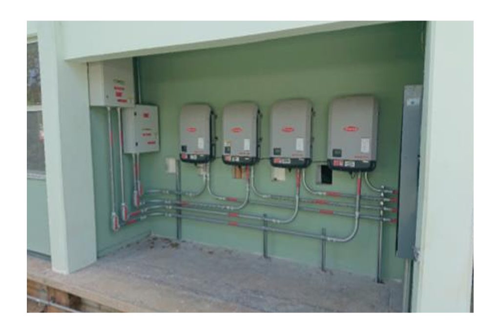 Finalmente, continuó, en Matemáticas se cuenta con 570 paneles solares de 540 watts cada uno para un sistema fotovoltaico con capacidad de 307.80 kilowatts por hora, además de 19 inversores de 15 kilowatts, representando de la misma manera el 80% del consumo total del plantel educativo.