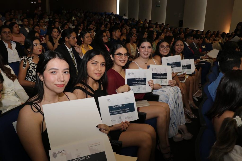 Al finalizar la entrega de constancias, se otorgó el reconocimiento de mejor promedio a: Melba Angélica Campo Franco y Ángela Natali Martín Valdez, de la Licenciatura en Nutrición generación XXIV y XXV, respectivamente; y para Cinthia Rosana Azcorra Puc, de la Licenciatura en Rehabilitación.