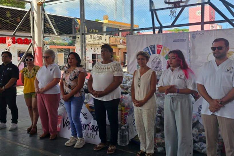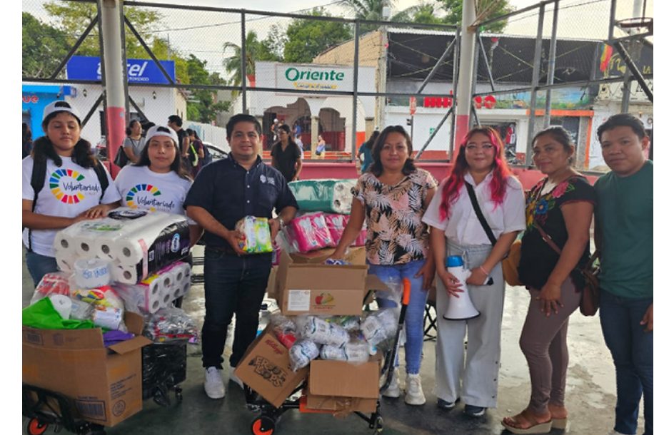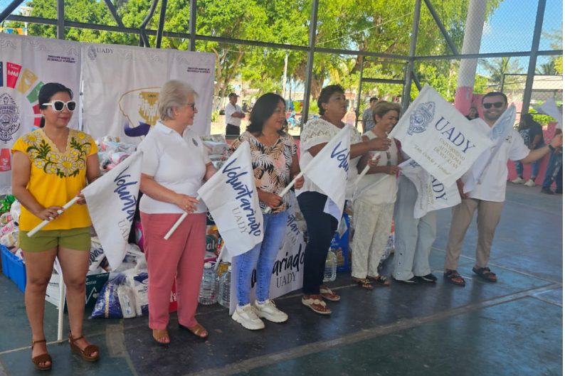 A través de su Programa Institucional de Voluntariado, la UADY realizó la entrega de despensas a los habitantes de este municipio que resultaron damnificados por el paso del ciclón tropical, con el propósito de brindar ayuda en este momento crítico.