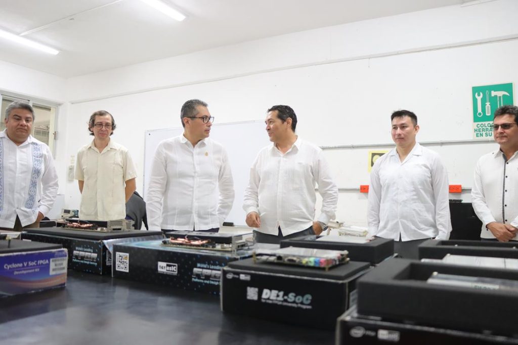 Alejandro Castillo Atoche, desarrollador líder de tecnología de procesos responsable del laboratorio, explicó que dicha empresa donó dos plataformas de DE-10 Agilex de Altera-Intel, basadas en circuitos integrados de última generación, que beneficiará a las y los alumnos del Campus de Ciencias Exactas e Ingeniería de la UADY para el desarrollo de habilidades avanzadas en el diseño de semiconductores.