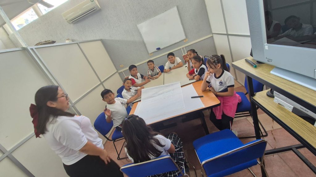 TIZIMÍN, YUCATÁN, 02/05/2025. —Por el Día Internacional del Libro, la Biblioteca de la Unidad Multidisciplinaria Tizimín (UMT) de la Universidad Autónoma de Yucatán (UADY) organizó la actividad “Jaguarcitos Lectores”, una jornada dedicada a fomentar el gusto por la lectura entre niñas y niños de educación básica.