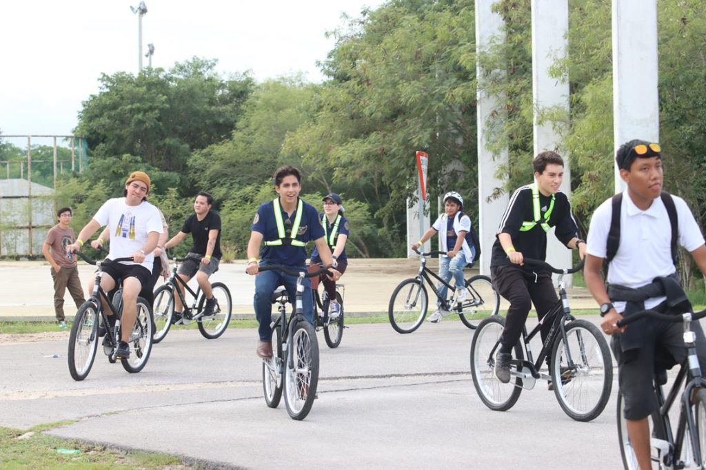 El recorrido en bicicleta se realizó partiendo desde la mencionada escuela de la UADY para trasladarse a las instalaciones de las Facultades de Educación, Contaduría y Administración, finalizando en Derecho.