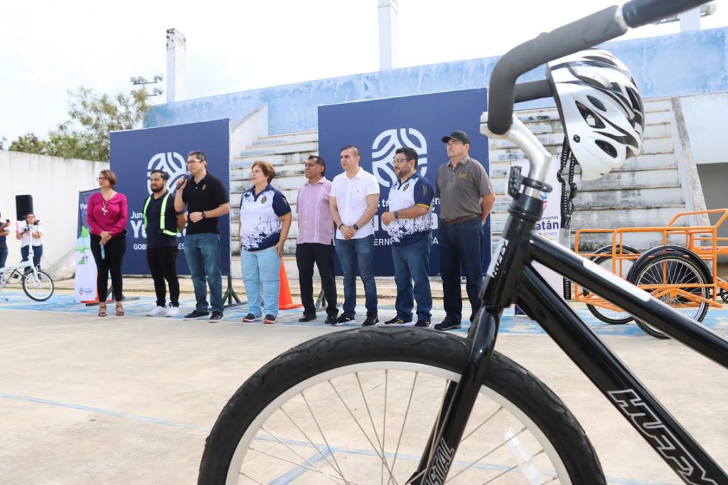 Ahí, el rector de la UADY, Carlos Alberto Estrada Pinto, las autoridades universitarias y el alumnado escucharon las indicaciones respecto al uso de cascos, arneses y pulseras de colores reflectantes; al igual que aprendieron cómo señalar en el tráfico para doblar y detenerse.