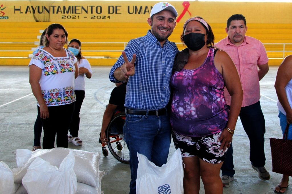 El Presidente Municipal de Umán, Dr. Gaspar Ventura Cisneros Polanco, encabezó la repartición de los sacos de maíz que equivalen a 20 kg cada uno y es de autoconsumo, cabe destacar que este producto fue destinado a familias vulnerables de la cabecera municipal, fraccionamientos y colonias.