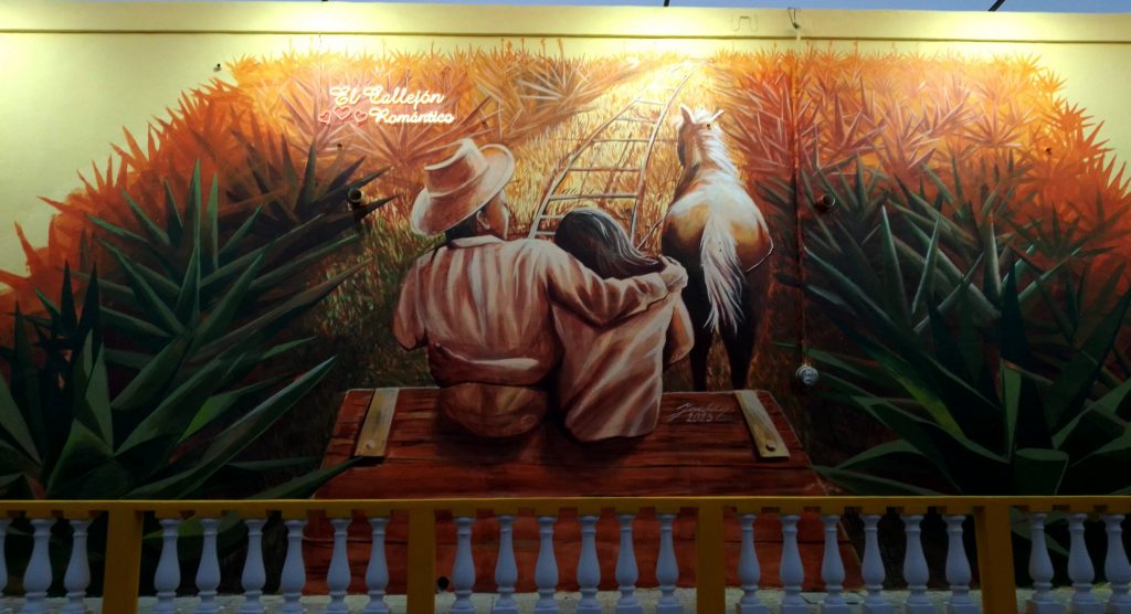 >>>Lugar de recreación y romanticismos, además tomarse fotografías en los diferentes murales que plasman la historia de la localidad, así como elementos representativos de los enamorados.