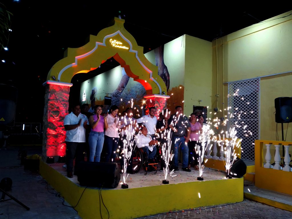 UMÁN, YUCATÁN, 15/02/2023. -El Presidente Municipal de Umán, Dr. Gaspar Ventura Cisneros Polanco, encabezó el acto inaugural de los trabajos de recuperación, rescate y remodelación del emblemático espacio de la Ciudad Capital de las Industrias que ya estrena una nueva imagen con los trabajos de iluminación, pintura, albañilería; nuestro Callejón Romántico.