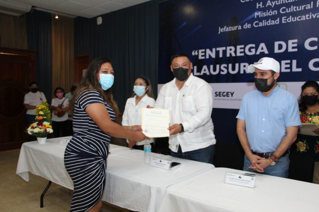 De igual forma 18 alumnos recibieron su certificado de secundaria y 2 de primaria por haber concluido sus estudios en nivel básico y se reconoció a 7 alumnos destacados en las diferentes disciplinas que se impartieron.