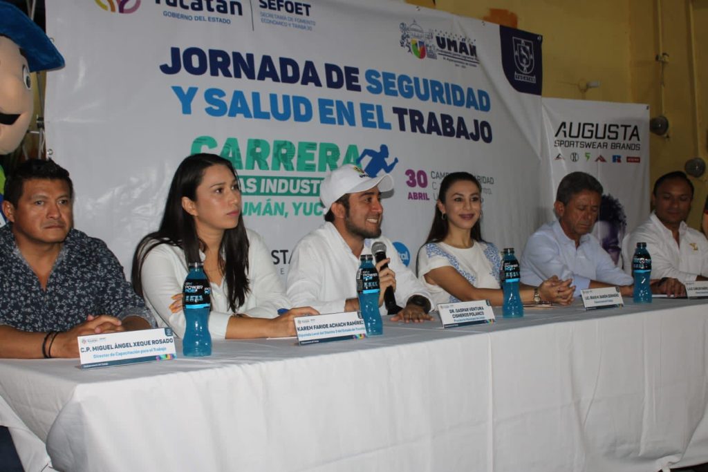 UMÁN, YUCATÁN, 11/04/2023. —Debido a la Jornada de Seguridad y Salud en el Trabajo 2023, se presentan en la ciudad de Umán, la Primera Carrera de las Industrias que se realizará el próximo 30 de abril, se esperan al menos mil corredores.