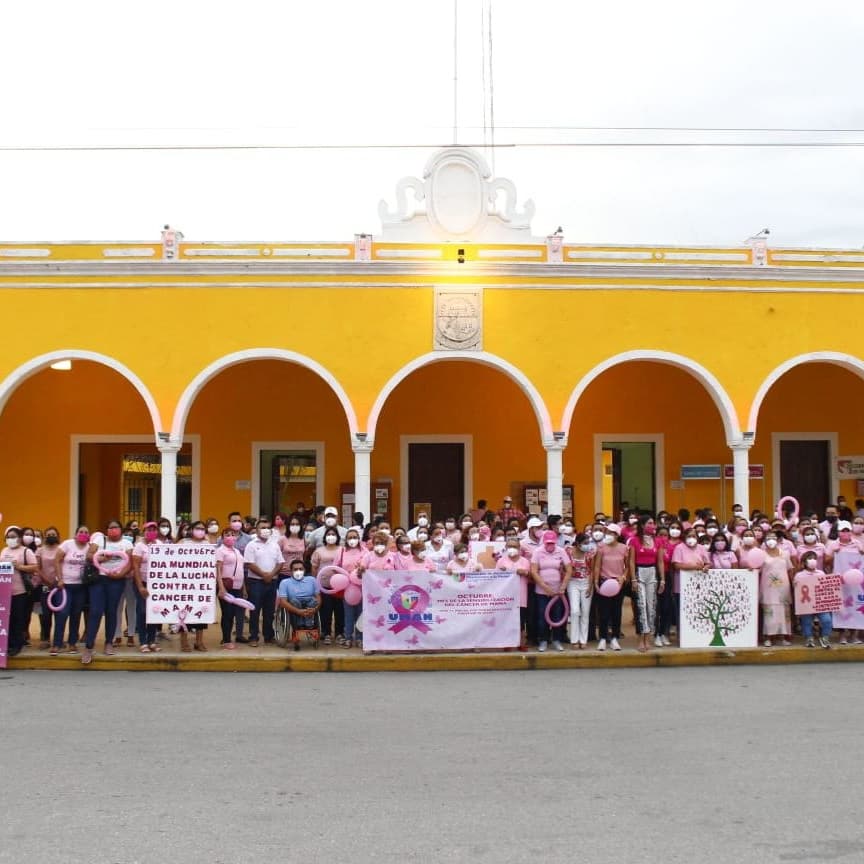 20/10/2021, Yucatán. –En el marco del Día Mundial de Lucha contra el Cáncer de Mama, el Ayuntamiento de Umán, a través de la Dirección de Protección y Atención a la Mujer, realizó una caminata que partió de la ex estación de ferrocarriles hasta la plaza cívica de la ciudad.