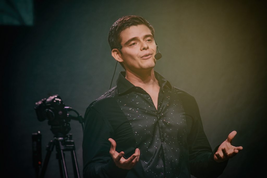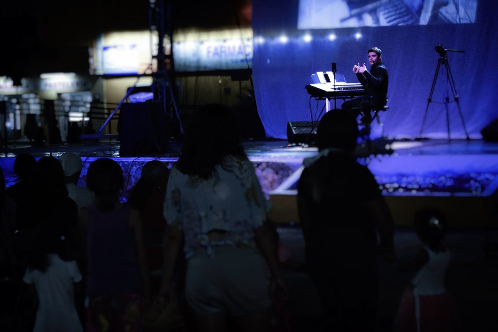 Con el electone stagea, instrumento de teclado que reproduce las notas usando tanto sus manos como los pies, mostró la magia detrás de la historia de las piezas orquestales como “La danza de azúcar” de El Cascanueces, así como un fragmento de El lago de los cisnes ambas de Tchaikovsky, también explicó la historia de “Promenade” incluida en Los cuadros de una exposición de Modest Músorgski.