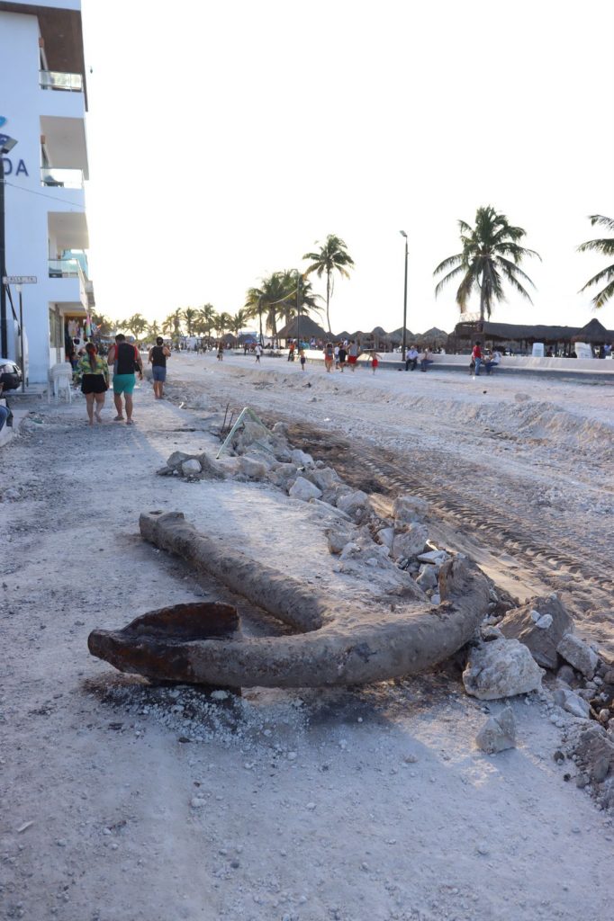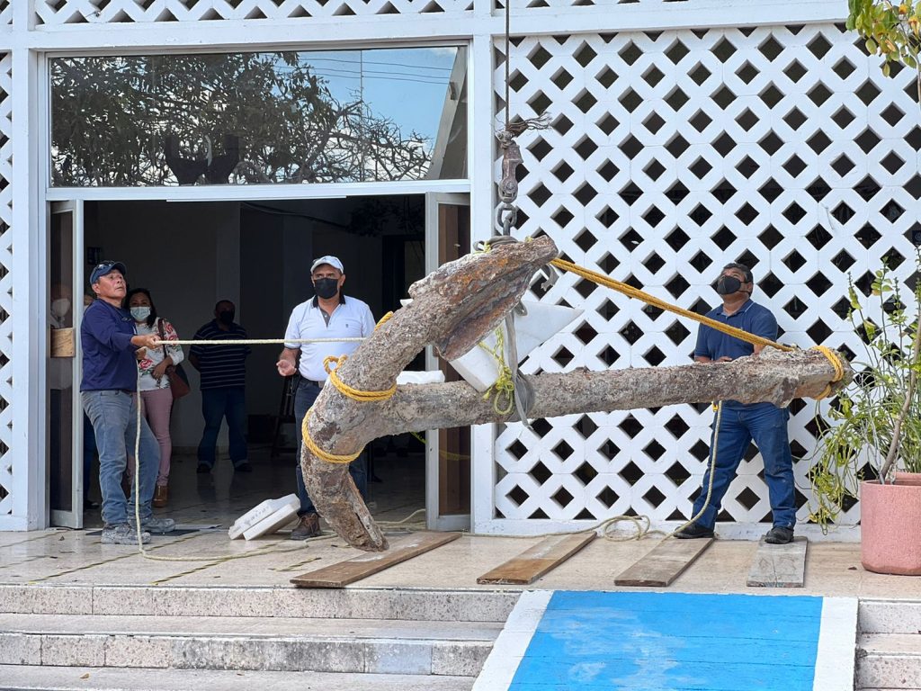 El director de Servicios Públicos y Ecología, Canán Góngora Ortegón, explicó que mientras se realizaban los trabajos de remodelación del malecón, la maquinaria pesada, se golpeó el ancla, , misma que al desenterrarla la descubrieron, cuyas dimensiones son de tres metros de largo y pesa unos mil kilogramos.