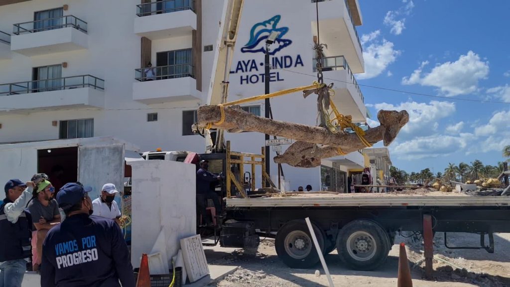 Personal especializado del INAH trabaja para valorar el bien cultural. Mientras que Eduardo López Calzada, director del Centro INAH Yucatán señaló que “gracias a la intervención de la ciudadanía de Progreso, los especialistas del INAH acudieron inmediatamente al llamado, permitiendo acordonar el área y realizar su traslado a las instalaciones del INAH para su restauración”.