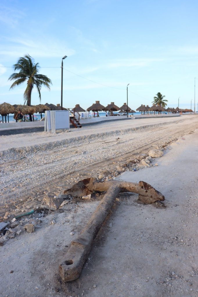 Un ancla antigua enterrada fue localizada en malecón de Progreso