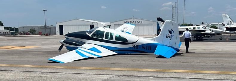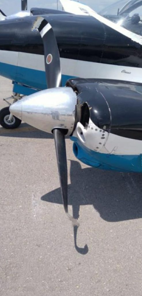 Los hechos ocurridos esta tarde, cuando la avioneta Beechcraft D95A, había aterrizado y era dirigida a su hangar, una falla mecánica se presentó en el tren de aterrizaje; quedó de lado.