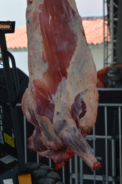 Ya se acercaba la hora, por la tarde del sábado, y comenzó el corte de los 354 kilos de la vaca, y se repartió de forma gratuita entre los miles de asistentes; fue una vaca asada. Simplemente delicioso.