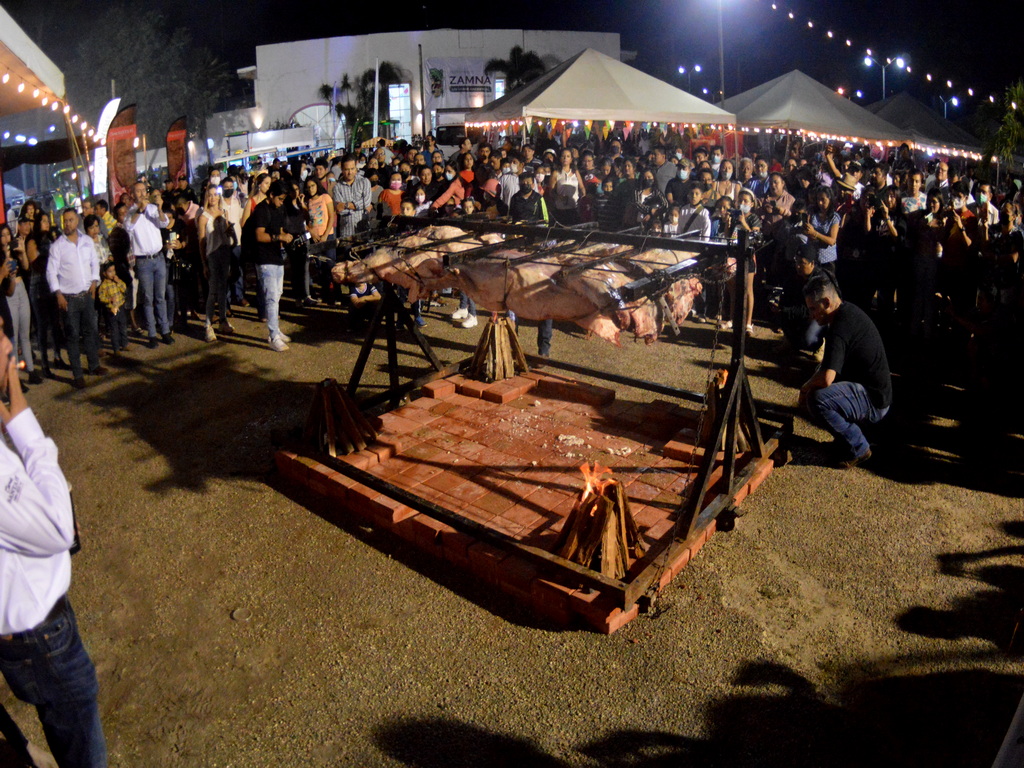 TIZIMÍN, 18/09/2022. -Carne de res. Una vaca fue asada al estilo “primitivo”, en el Festival de la Carne, en el municipio de Tizimín, lo que provocó un furor entre la población de la región.