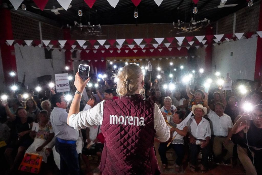En ese municipio se reunió con militantes y simpatizantes, a quienes recordó que la Cuarta Transformación llegó al país para otorgar derecho a los mexicanos, no para comprar conciencias o dar regalos.