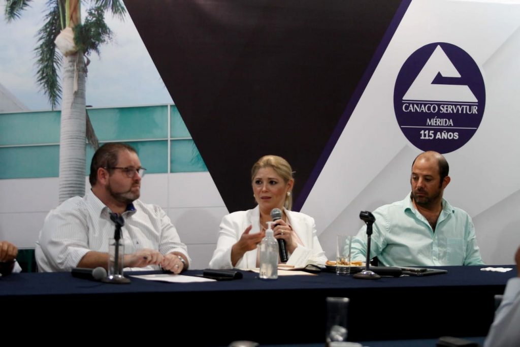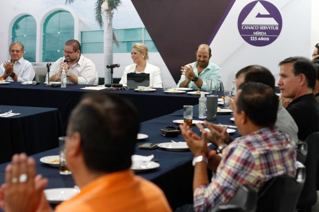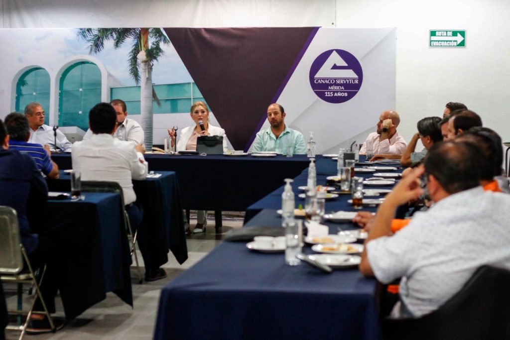 MÉRIDA, 4/10/2022.- Para aportar propuestas que fortalezcan el desarrollo de los sectores productivos, empresarios de la Cámara Nacional de Comercio, Servicios y Turismo (Canaco Servytur) de Mérida, tendrán la oportunidad de participar en una mesa de trabajo con el secretario de Hacienda del Gobierno Federal, Rogelio Ramírez de la O, por gestión de la senadora por Yucatán, Verónica Camino Farjat.