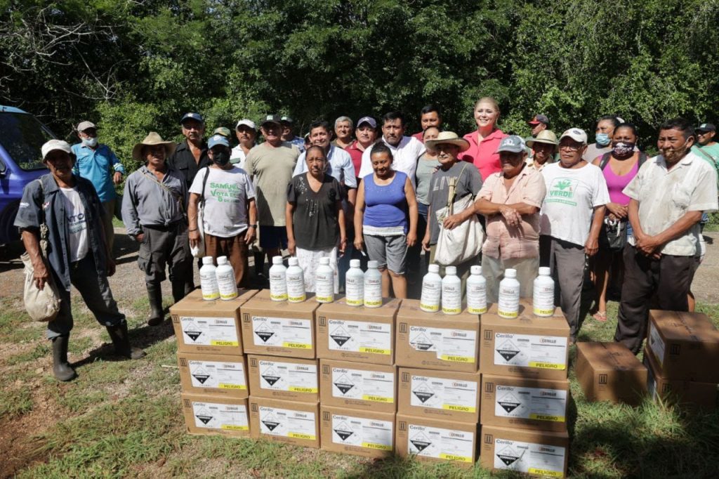 La Senadora de Morena por Yucatán, Verónica Camino Farjat, a invitación del alcalde de Samahil, Samuel Mayen Poot, se reunió con 300 productores de cítricos de las comisarías de Kuchel y San Antonio Tedzidz de Samahil y atestiguó la entrega de herbicidas y diversos apoyos, por parte del  Ayuntamiento, para el cuidado de las plantas, y con ello obtener una abundante producción que les permita contar con más ingresos a las familias de esas localidades.