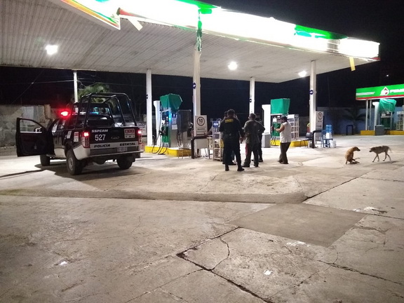 Según testigos, dos sujetos a bordo de una moto de la marca Italika se acercaron para cargar combustible aparentemente de manera normal; sin embargo, cuando el despachador terminó de cargar combustible, los hombres -entre ellos al parecer un trasvesti- sometieron al que los atendía.