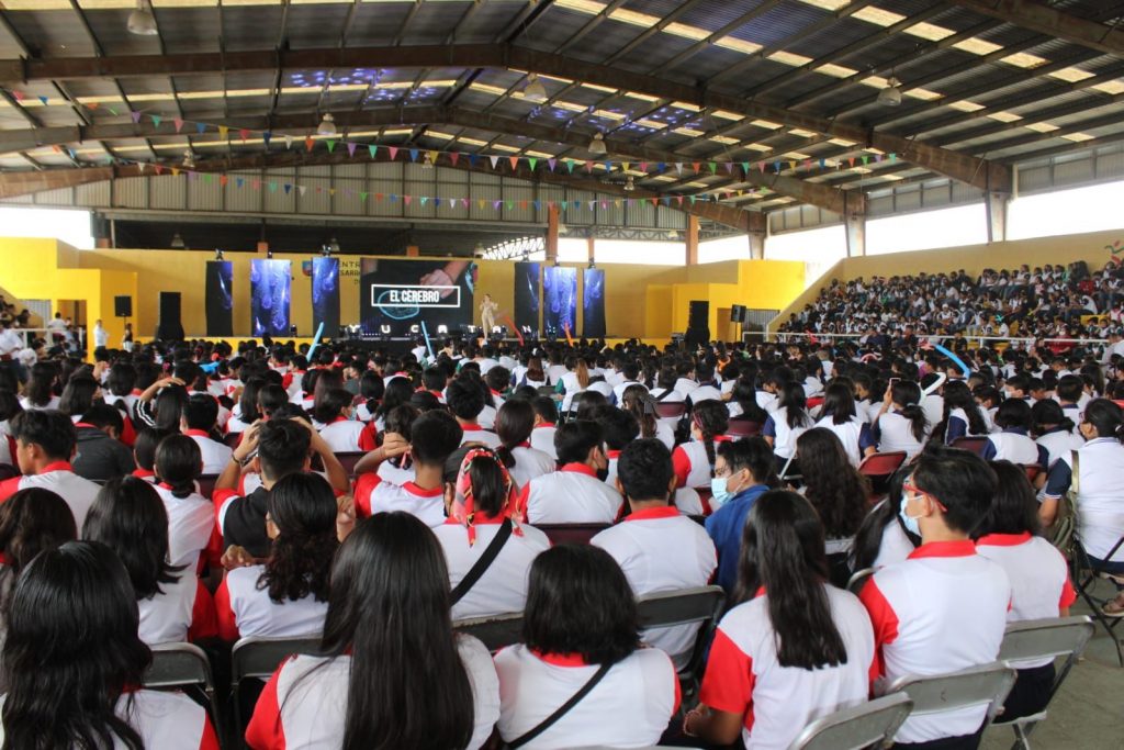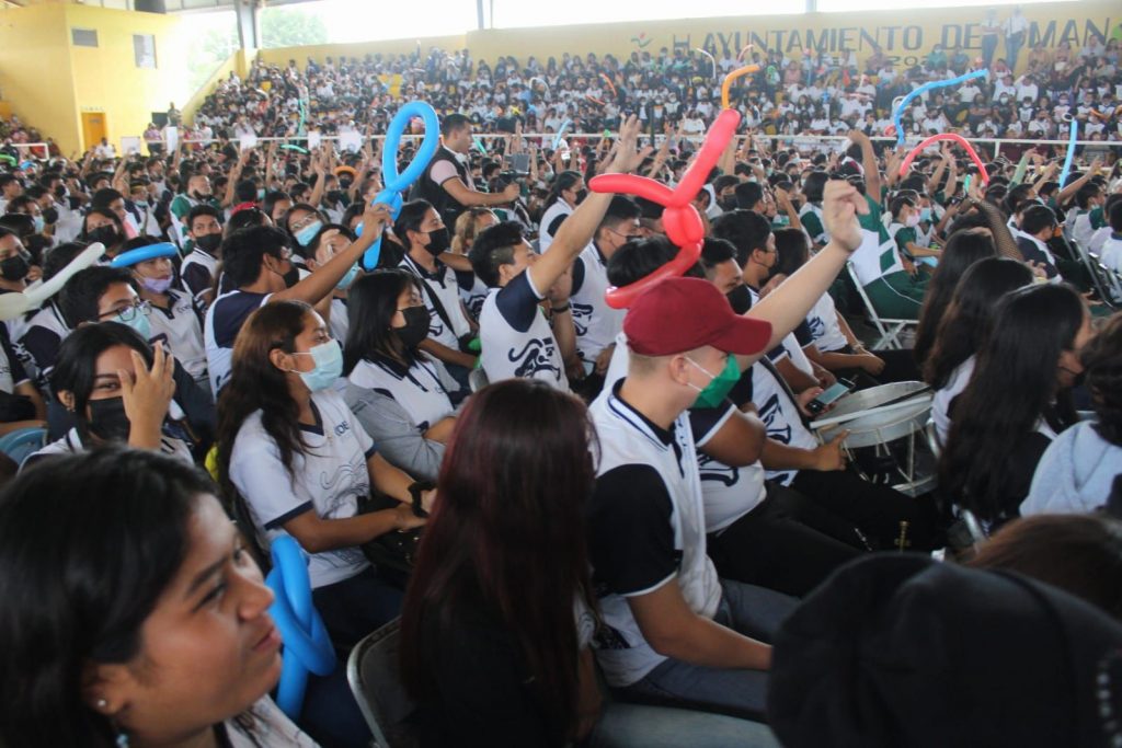 YUCATÁN, 18/11/2022. —En un hecho histórico y con la asistencia de cientos de jóvenes estudiantes, el Programa “Vive sin Drogas” de Fundación Tv Azteca llegó a la ciudad de Umán para crear conciencia sobre la prevención de adicciones.