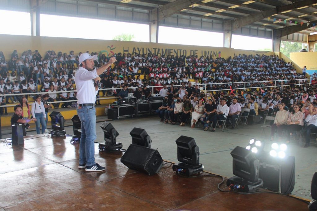 “En Umán somos un gran equipo donde trabajamos juntos para impulsar una cultura de prevención ante las adicciones. Así, con las gestiones necesarias junto al DIF Estatal, logramos que llegara a Umán la gira nacional “Vive Sin Drogas” que se suma a los esfuerzos en esta materia; al igual que con programas como Juventudes Yucatán Planet Youth. Estos son cambios con los que estamos transformando a Umán. Aún falta mucho por hacer, pero juntos vamos a lograrlo”, dijo el primer edil umanense.