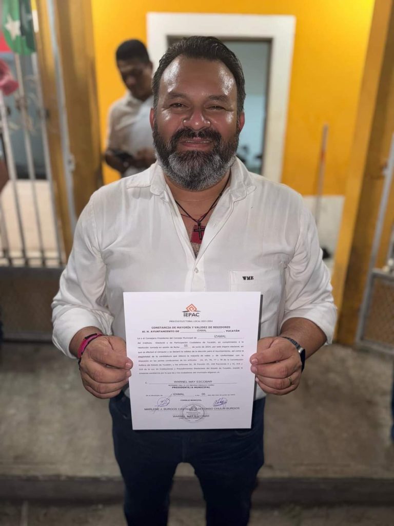Fue hasta las 03:00 horas de hoy, cuando May Escobar, con la constancia en la mano, saliera dar las gracias a las personas que aún se encontraban allí, y hacer oficial su nombramiento como alcalde de Izamal en el período 2024-2027.
