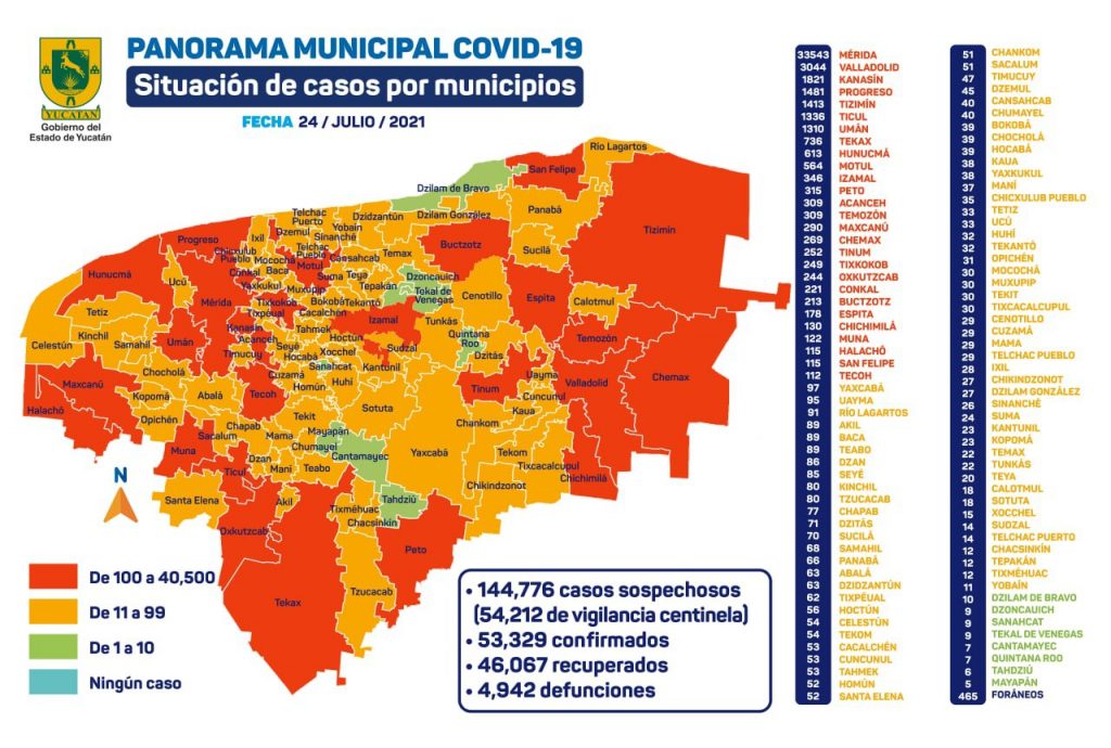 Específicamente, en Mérida se han diagnosticado 32 mil 297 personas contagiadas de Coronavirus (casos acumulados al 23 de julio).