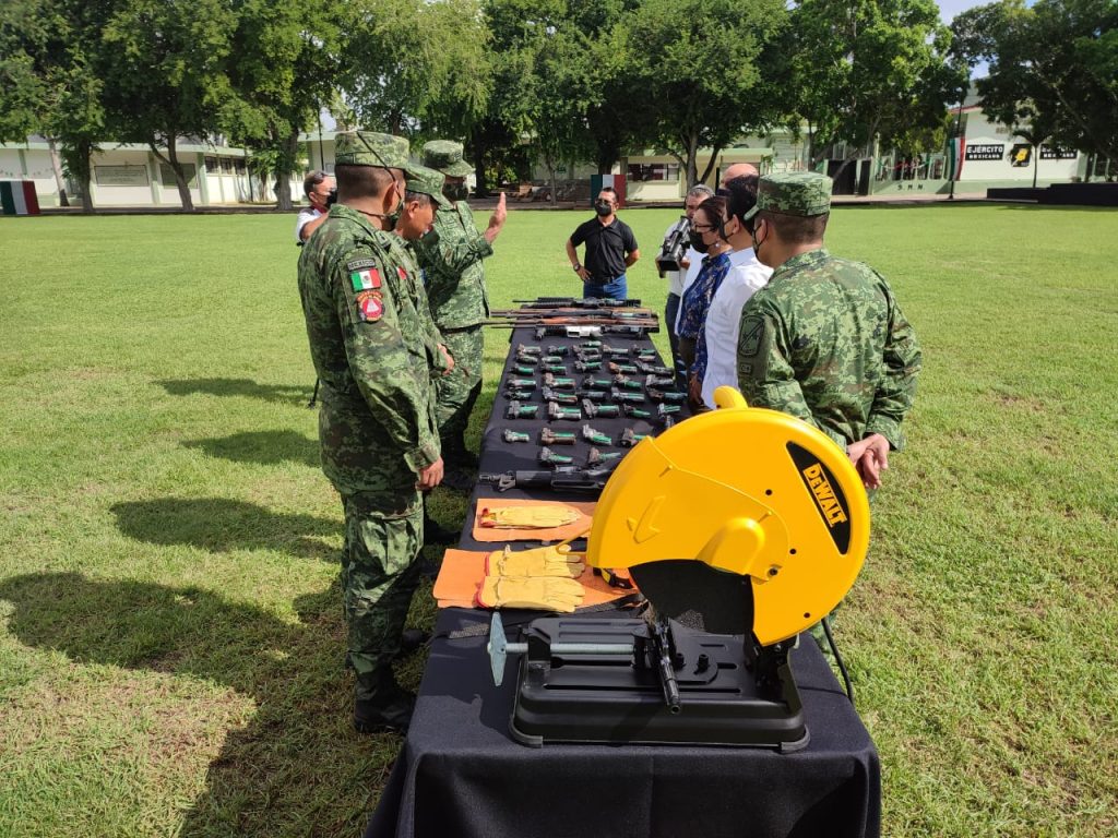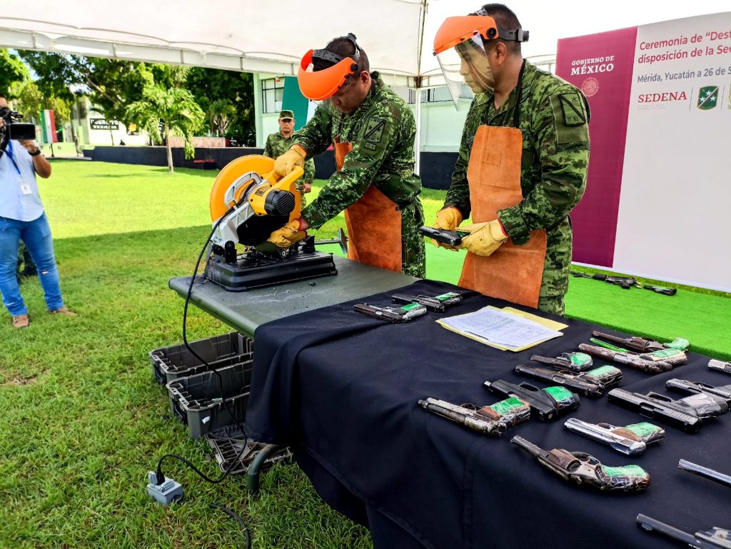 MÉRIDA, YUCATÁN, 26/09/2022. –En las instalaciones de la X Región Militar fueron destruidas 52 armas de fuegos, que fueron aseguradas por diferentes autoridades en el Yucatán.