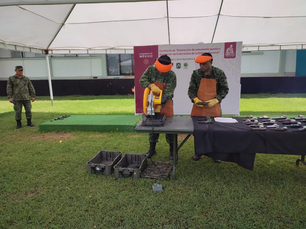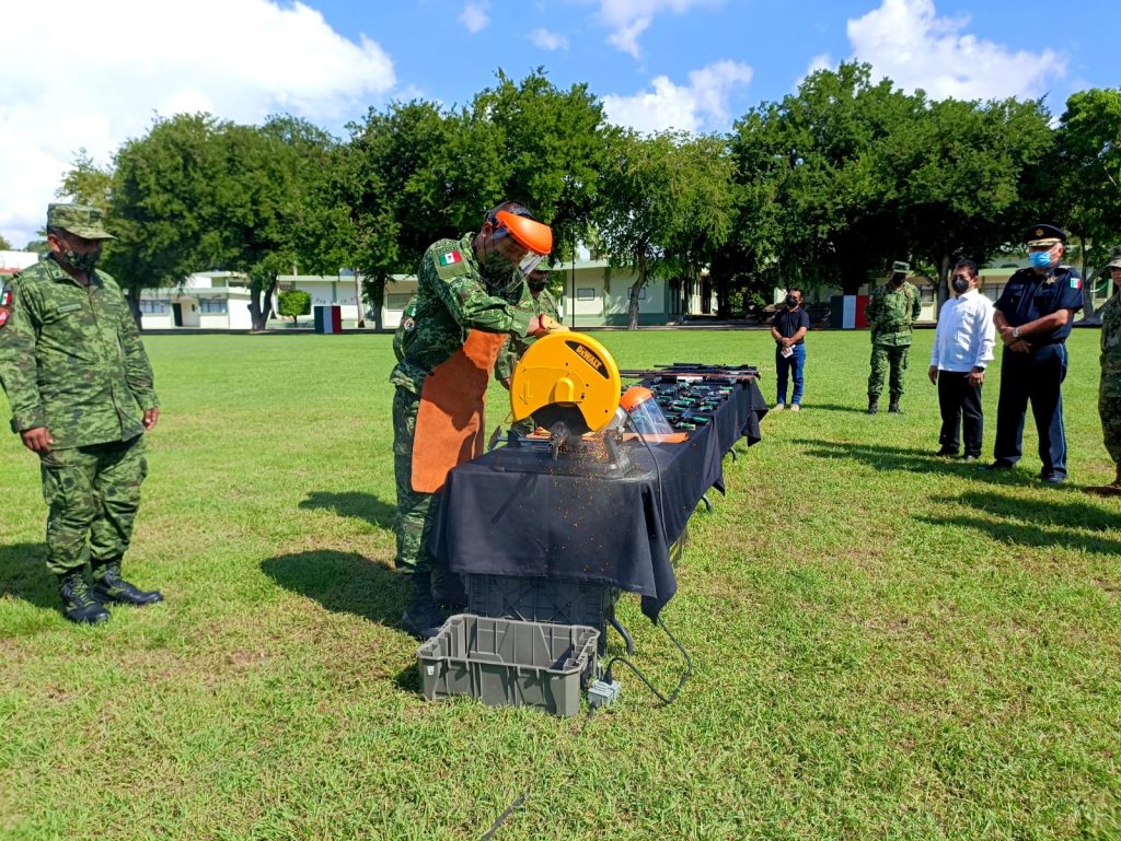 Duante la “Ceremonia de destrucción de armamento puesto a disposición de la Secretaría de la Defensa Nacional”, se detalló que fueron destruidas 41 armas cortas y 11 armas largas, 1,773 municiones, 55 cargadores, 5 cascos, 2 ojivas y una funda.