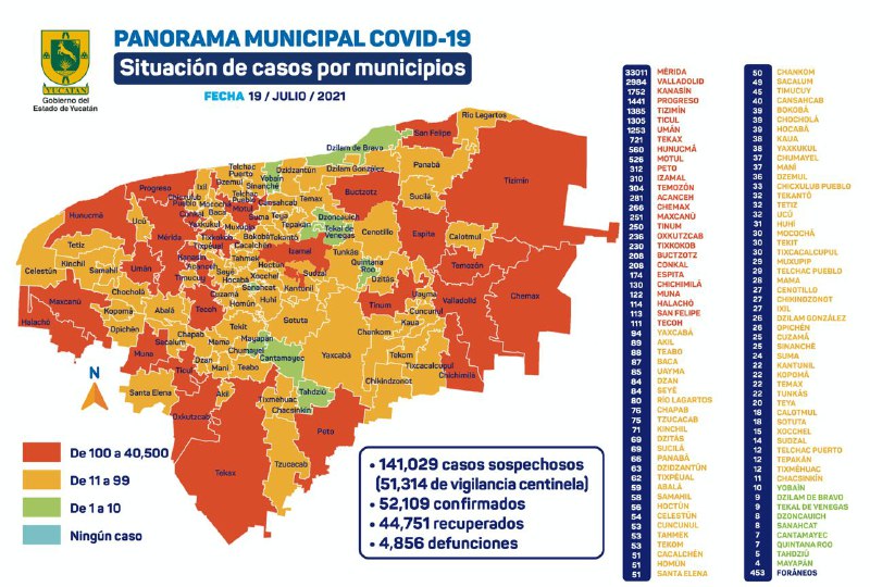 Específicamente, en Mérida se han diagnosticado 31 mil 773 personas contagiadas de Coronavirus (casos acumulados al 18 de julio).