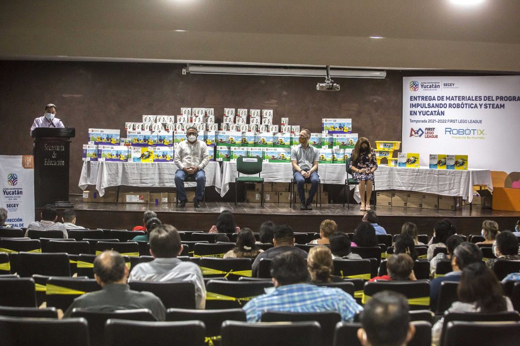 MÉRIDA, 22/12/2021. –Escuelas públicas de Yucatán recibieron material didáctico de Lego Education y capacitación, para impulsar la formación sobre robótica y programación, con apoyo de la Secretaría de Educación del Estado (Segey) y la Fundación Robotix, internacionalmente reconocida en el desarrollo de habilidades STEAM (ciencia, tecnología, ingeniería, arte y matemáticas, en inglés).