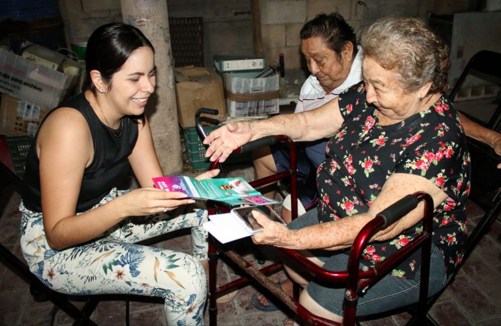 Ante decenas de mujeres, hombres, de todas edades y diversos estratos sociales, y en el domicilio del dos veces Presidente Municipal, José Antonio Lara Ferrera, la Coordinadora de esta estrategia, Lila Frías Castillo reiteró, ahora en esta cabecera municipal, tal como lo hizo el fin de semana en Sinanché y en San Crisanto, las bondades y beneficios de esta herramienta, disponible en una tarjeta con chip.